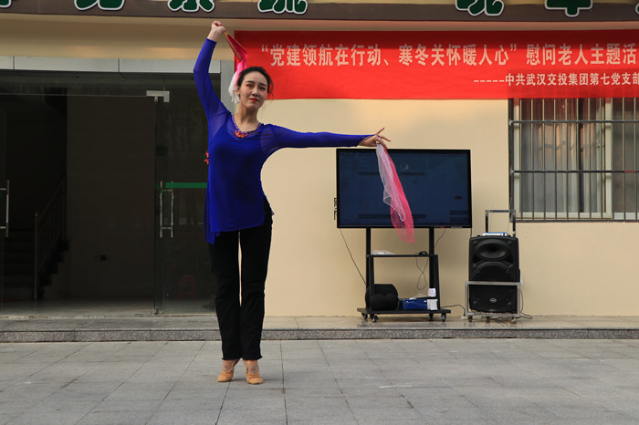 第七黨支部書記沈海濤首先為活動致辭,表達了武漢交投集團第七黨支部對老人們的親切慰問,并祝福老人們度過一個幸福的晚年。九點整,由交投員工及員工家屬組成的四環文藝小分隊為敬老院的老人們傾情上演了一臺自編自導的文藝演出,獨唱、舞蹈、戲曲、快板、器樂演奏……豐富多彩的節目輪番上演,充分展示了交投青年多才多藝的精神風貌和良好的企業形象。
