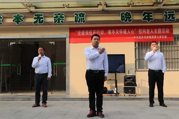 為貫徹落實市委組織部全面推行“5+N”模式及11月份“支部主題黨日”文件精神,弘揚中華民族尊老敬老傳統美德,引導黨員干部尊重老人、孝敬長輩、學會感恩,2018年11月25日上午,中共武漢交投集團第七黨支部全體黨員及東、西四環公司中層及以上干部職工來到江大社區頤德養老中心,開展了以“黨建領航在行動、寒冬關懷暖人心”為主題的敬老院慰問活動,為該院56位老人送去了冬日里的溫暖。