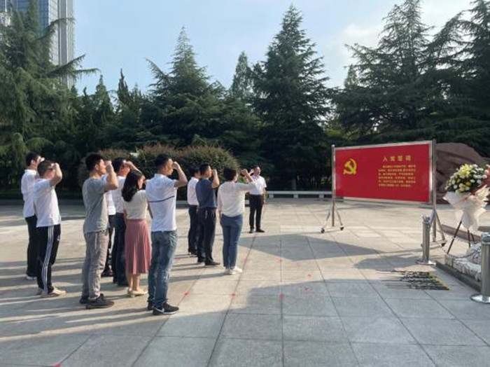 在紀念館前,黨支部書記陳景麗同志以《百年黨史,紅色傳承》為主題為全體黨員上了一堂生動的黨課,號召黨員干部要弘揚先輩的革命精神,發揮黨員帶頭作用,尤其要做到三點,一是堅定信心,立場堅定跟黨走;二是勇于擔當,團結奮斗做表率;三是甘于奉獻,搶抓機遇有作為。