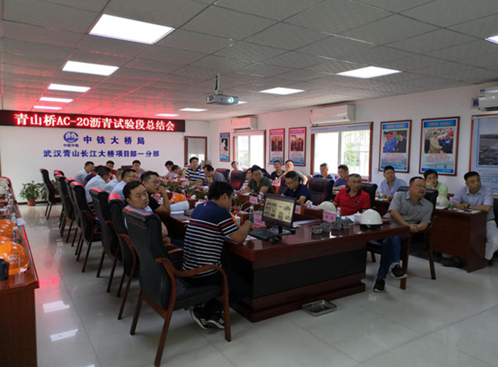 6月19日,青山橋公司組織設(shè)計(jì)、咨詢、監(jiān)理、施工及專業(yè)分包單位召開了瀝青路面AC-20試驗(yàn)段施工總結(jié)會(huì)。會(huì)議特邀省公路學(xué)會(huì)白山云理事長、中南安全環(huán)境技術(shù)科學(xué)研究院有限公司張厚記院長兩位知名專家為項(xiàng)目瀝青路面施工情況進(jìn)行把關(guān)。