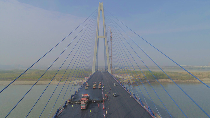 本次鋪裝任務(wù)完成后,武漢交投集團(tuán)青山長江大橋項(xiàng)目路面工程已完工,下一步將全面推進(jìn)交安、機(jī)電、房建等附屬工程施工。