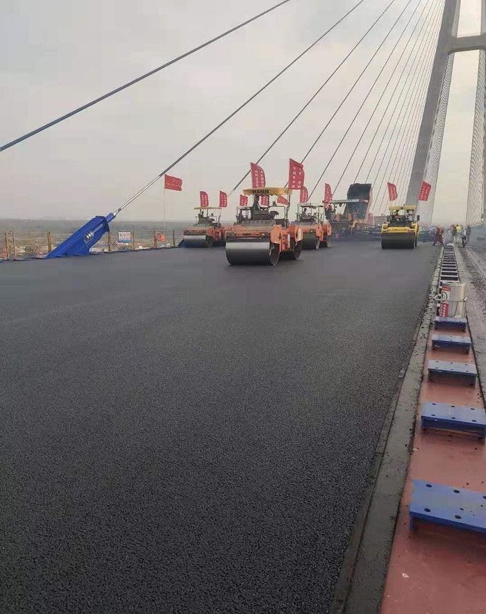 一直以來,鋼橋面瀝青路面就是世界性難題。針對“大跨、超寬、重載”的嚴(yán)苛使用條件,通過科研階段的反復(fù)試驗(yàn)和論證,青山長江大橋主航道橋采用了“GA-10澆注式瀝青+ SMA-13高彈改性瀝青”的路面鋪裝設(shè)計(jì)方案。如何確保各項(xiàng)設(shè)計(jì)指標(biāo)的實(shí)現(xiàn),做好每一個環(huán)節(jié)的施工質(zhì)量控制則是關(guān)鍵。自路面工程開工以來,交投集團(tuán)青山長江大橋項(xiàng)目公司以工作專班的形式,牽頭組織路面設(shè)計(jì)、咨詢、監(jiān)理、施工、檢測等單位,通過精心優(yōu)選瀝青等原材料、不斷優(yōu)化混合料配合比、扎實(shí)開展試驗(yàn)段試鋪與總結(jié)、嚴(yán)格執(zhí)行施工前置條件檢查、加大施工過程跟蹤檢測、積極運(yùn)用信息化監(jiān)控等手段,有力保證了路面工程質(zhì)量。