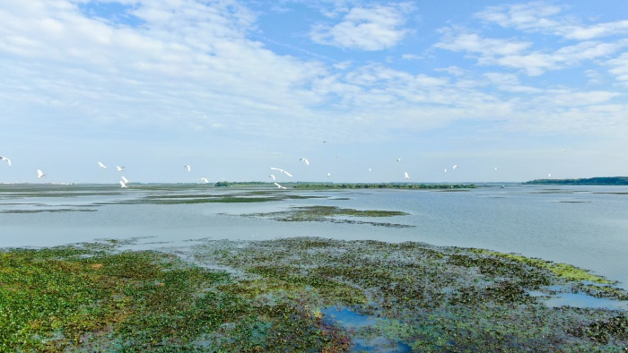 如今,當全長8300余米的斧頭湖一號鋼棧橋如鋼鐵長龍橫臥水面,其映照的不僅是建設者的汗水,更是生態優先的答卷。鋼棧橋及主體工程施工期間,斧頭湖作業區水質監測數據持續優良,周邊濕地未受侵擾。正是這份對自然的敬畏,引來了白鷺的棲息。它們掠過工地林立的樁基,停駐在防護網外的淺灘,儼然成為生態成效的“第三方認證”——工業巨人以謙卑姿態與自然對話,終獲生靈信任。